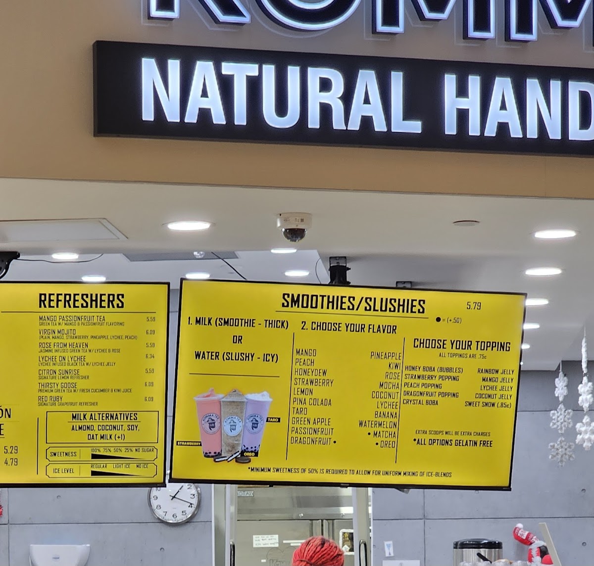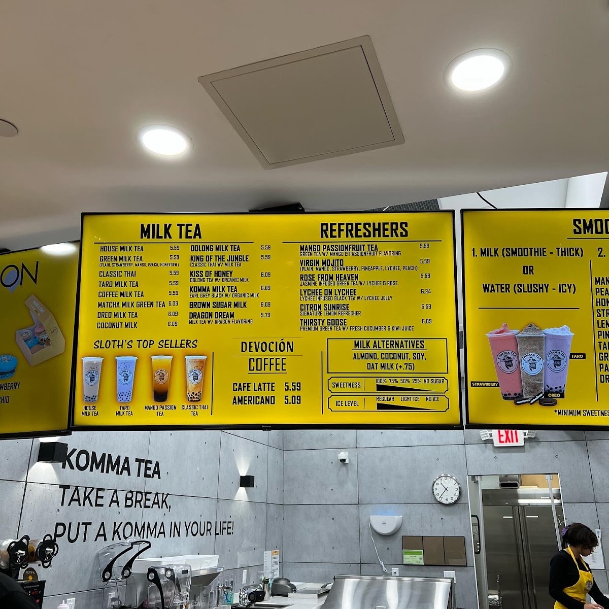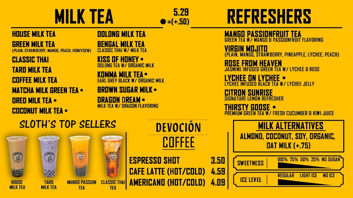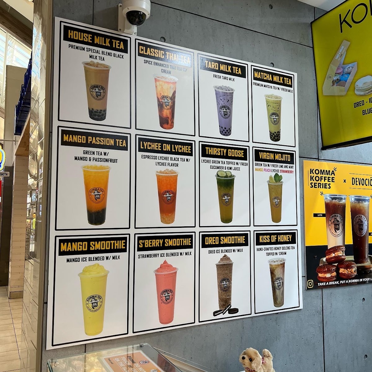 From a reviewer’s perspective, the menu at Komma Tea - Sawgrass offers a diverse and creative selection that caters to both classic tea lovers and those looking for something more unique. The milk tea lineup features popular choices like King Of The Jungle, House Milk Tea, Oolong Milk Tea HORCHATA, and Komma Milk Tea, providing a strong foundation for traditional boba fans. The bottled drink options such as Red Bull, Coconut Water, Water Cup With Ice Fiji Water, and S. Pellegrino are convenient additions for those who want something simple and refreshing. Coffee lovers can enjoy staples like Iced Cafe Latte, Double Espresso, Hot Americano, Hot Cafe Latte, and Iced Americano, while the refresher menu stands out with fruity and vibrant options like Mango Passion Tea, Red Ruby, Virgin Mojito Lychee On Lychee, and Thirsty Goose. For something thicker and sweeter, the smoothie and slush selections including Coconut, Mango Passion, Honeydew Lemon, and Matcha are appealing choices. The dessert side is nicely complemented by macaron flavors such as Creme Brulee M, Mango M, Oreo M, Peanut Butter M, and Choco Hazelnut M. Finally, tea enthusiasts can explore more traditional flavors through the custom tea section with Iced Genmaicha Green, Hot Mellow Oolong, Hot Grape Oolong, Iced Roasted Oolong, and Hot Peach Oolong, making the menu feel well-rounded and thoughtfully curated. Overall, the menu provides a balanced mix of milk teas, fruit teas, coffee, smoothies, and desserts, making it a versatile spot for a wide range of tastes.